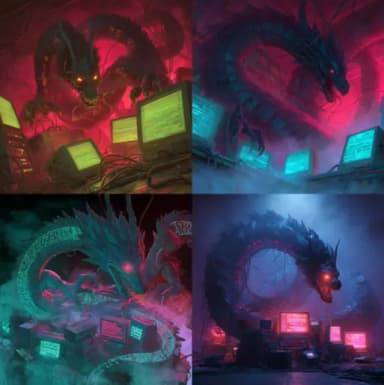 - Persona: Digital dragon chimera, coiled around servers and computers, glowing with sinister energy.