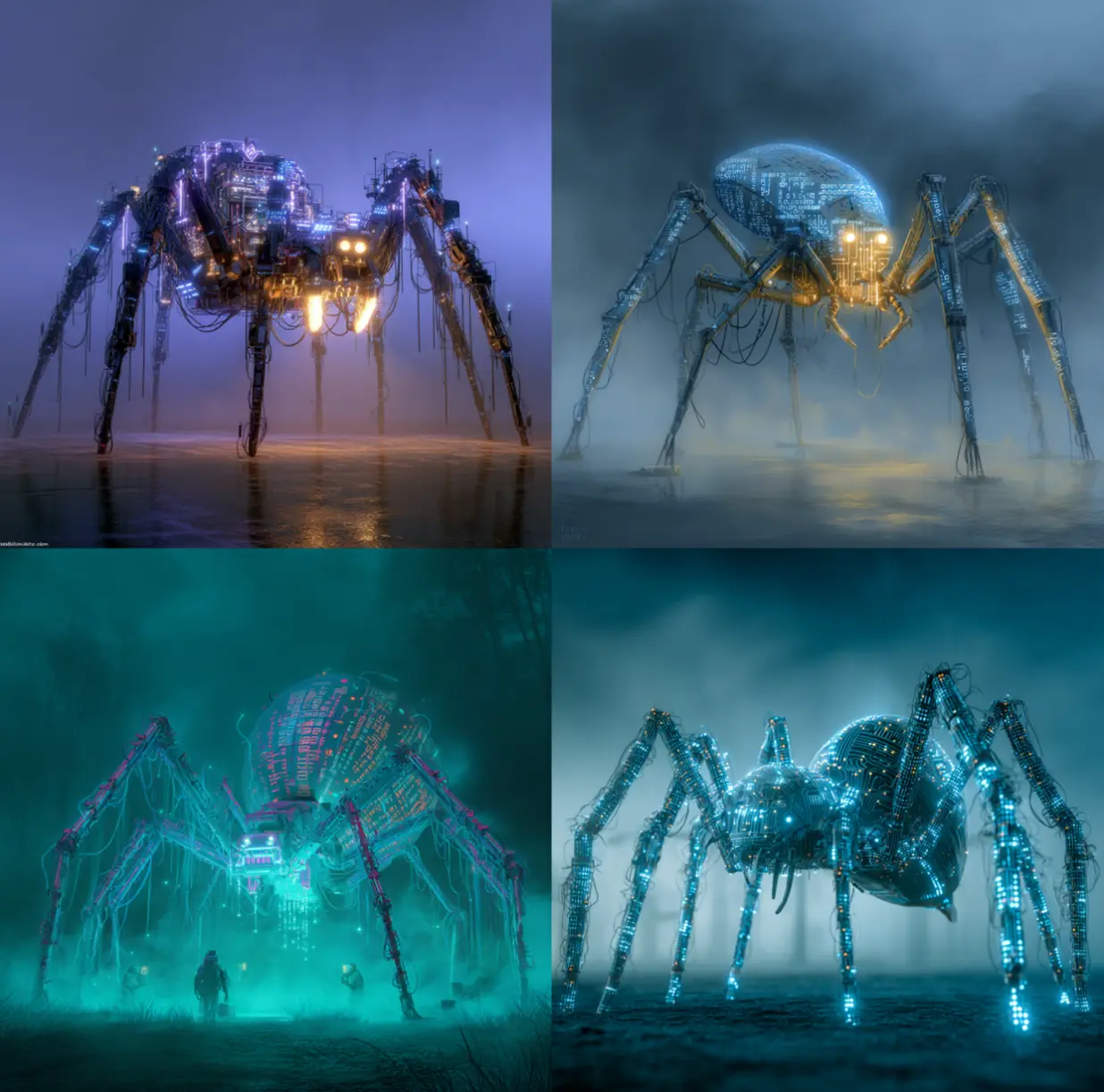 - Persona: Gigantic, glowing-eyed spider, spinning webs of code, baiting human victims.
