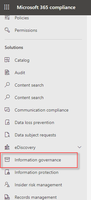 Step 2: On the left navigation menu, select Information Governance