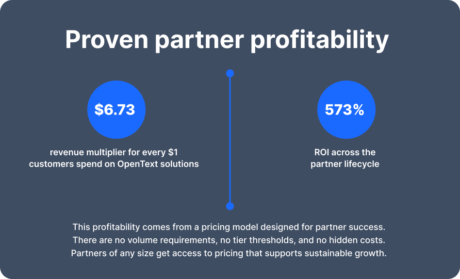 OpenText bundles are priced to leave meaningful room for MSP profitability. Partners achieve strong margins even at smaller volumes, and the best-performing MSPs see exceptional results.