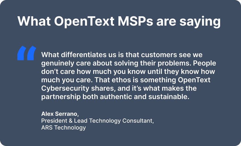 OpenText is proving that vendors can succeed by making MSP partnership simple, transparent, and built for mutual growth. And we do it by giving partners the freedom to succeed on their own terms.
