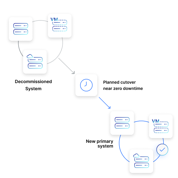 Cutovers happen in minutes with no disruption to end users.